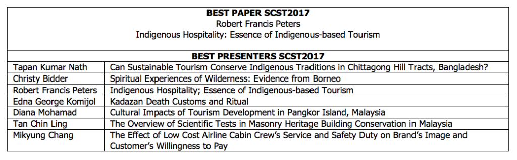 The “Best Presenter” and “Best Paper” awards were presented to its recipients on 2nd June 2017 during the “SCST2017 Closing Ceremony” hosted by the Minister of Energy, Green Technology and Water (KeTTHA) under the Green Foundation Malaysia.